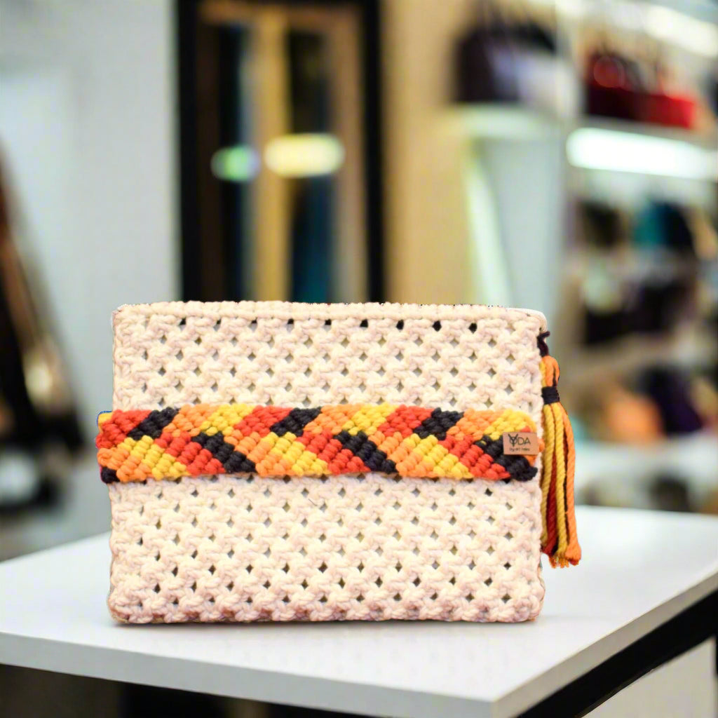 Mylah Handheld Ladies Clutch Bag | Macrame Fashion Accessory with Tassel | Clutch Handbag For Women | Ladies Clutch Bag